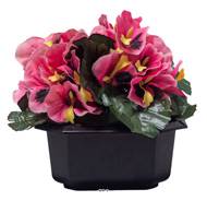 Superbe composition bac carré de fleurs artificielles Pensées pour la Toussaint ou les Rameaux.