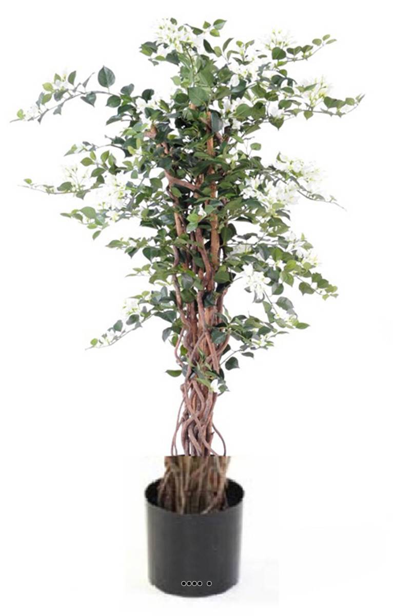 Bougainvillier artificiel H 180 cm D 90 cm en pot tronc lianes – Plante déco réaliste Blanc neige