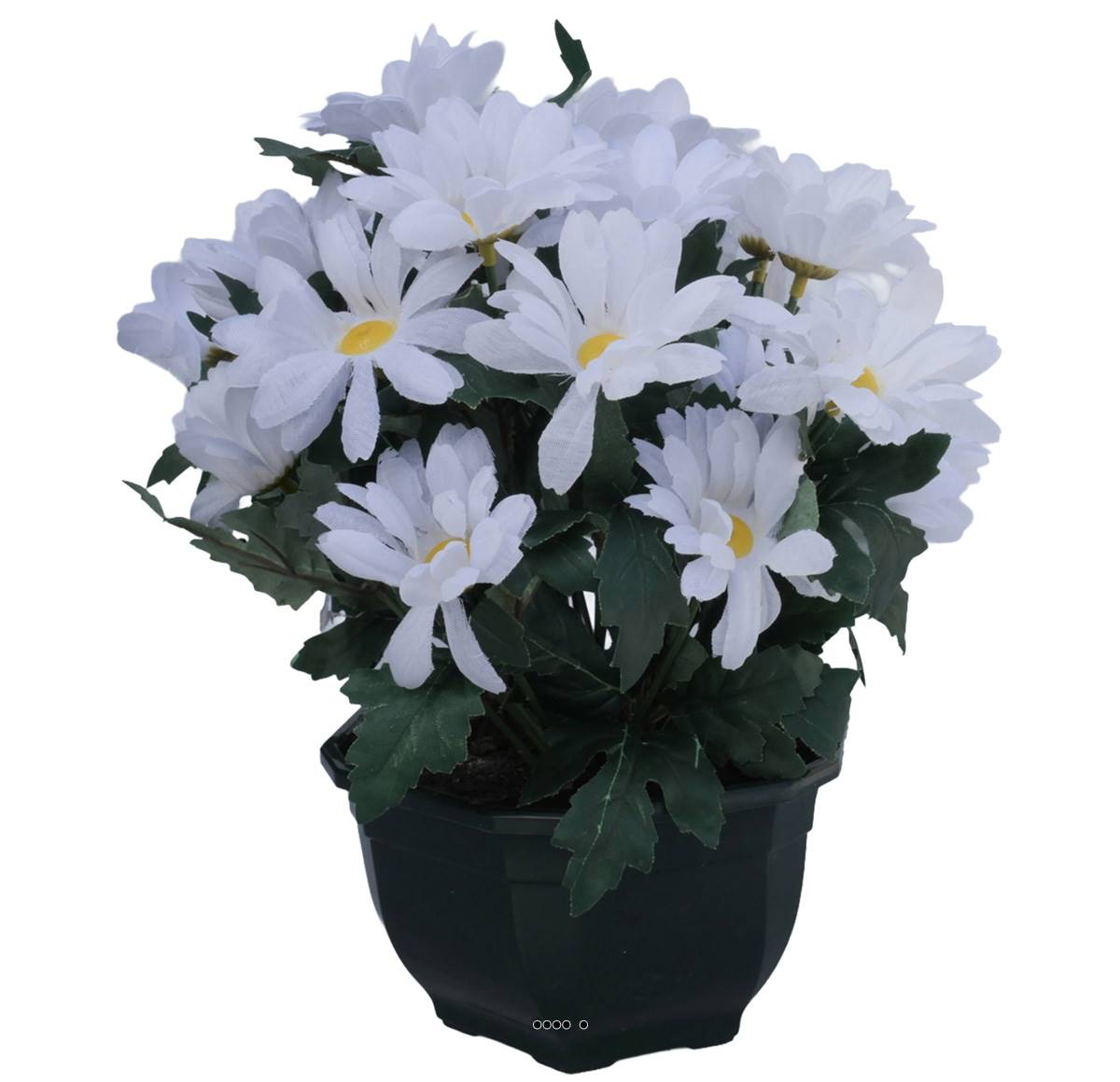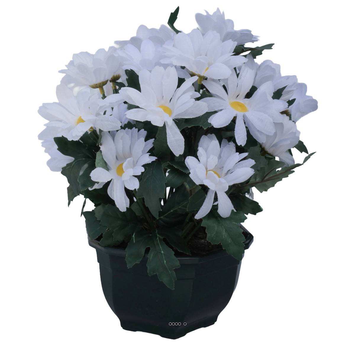 Composition fleurs artificielles cimetière vasque marguerites H27 cm D27 cm Blanc