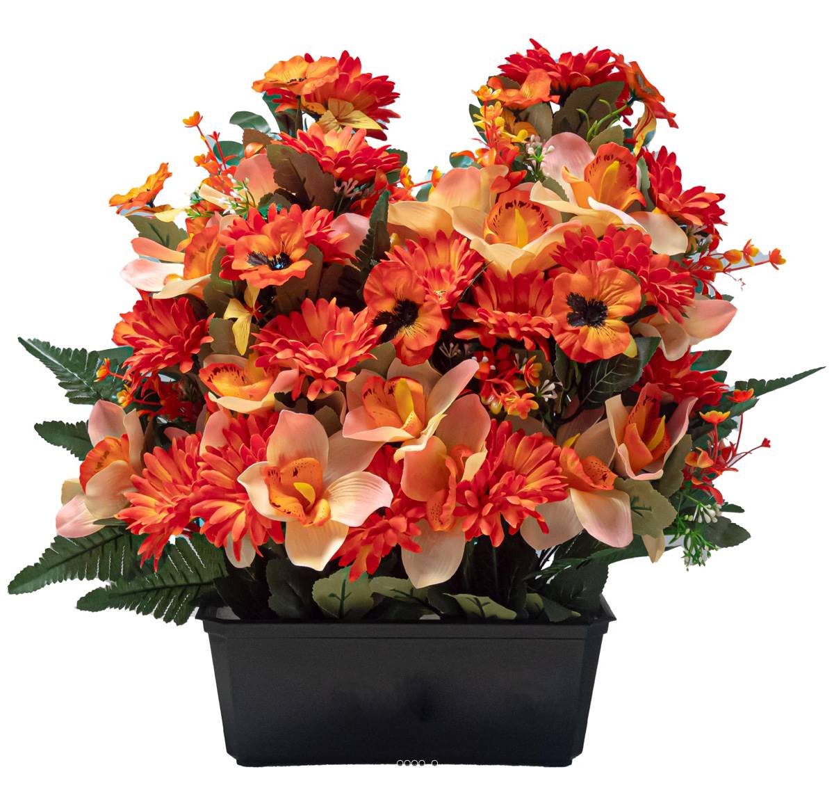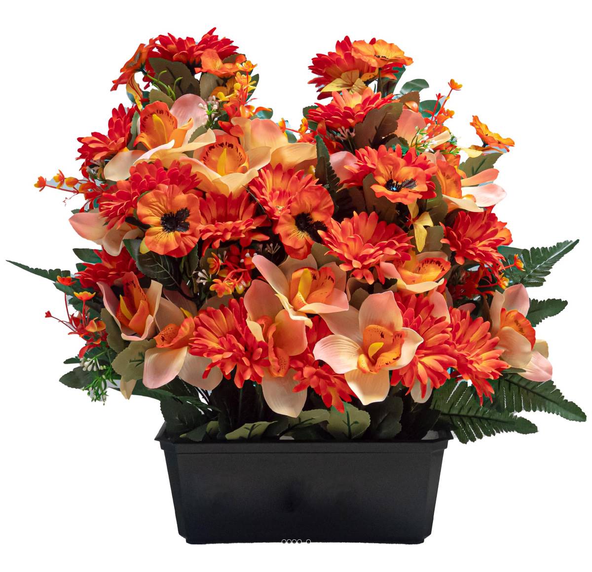 Imposante Jardinière de fleurs artificielles pour le cimetière H 57 cm Lg 48 cm Orange