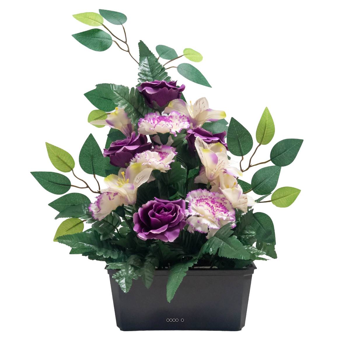 Jardinière d'Alstremarias fleurs artificielles pour le cimetière H 50 cm Lg 40 cm Pourpre