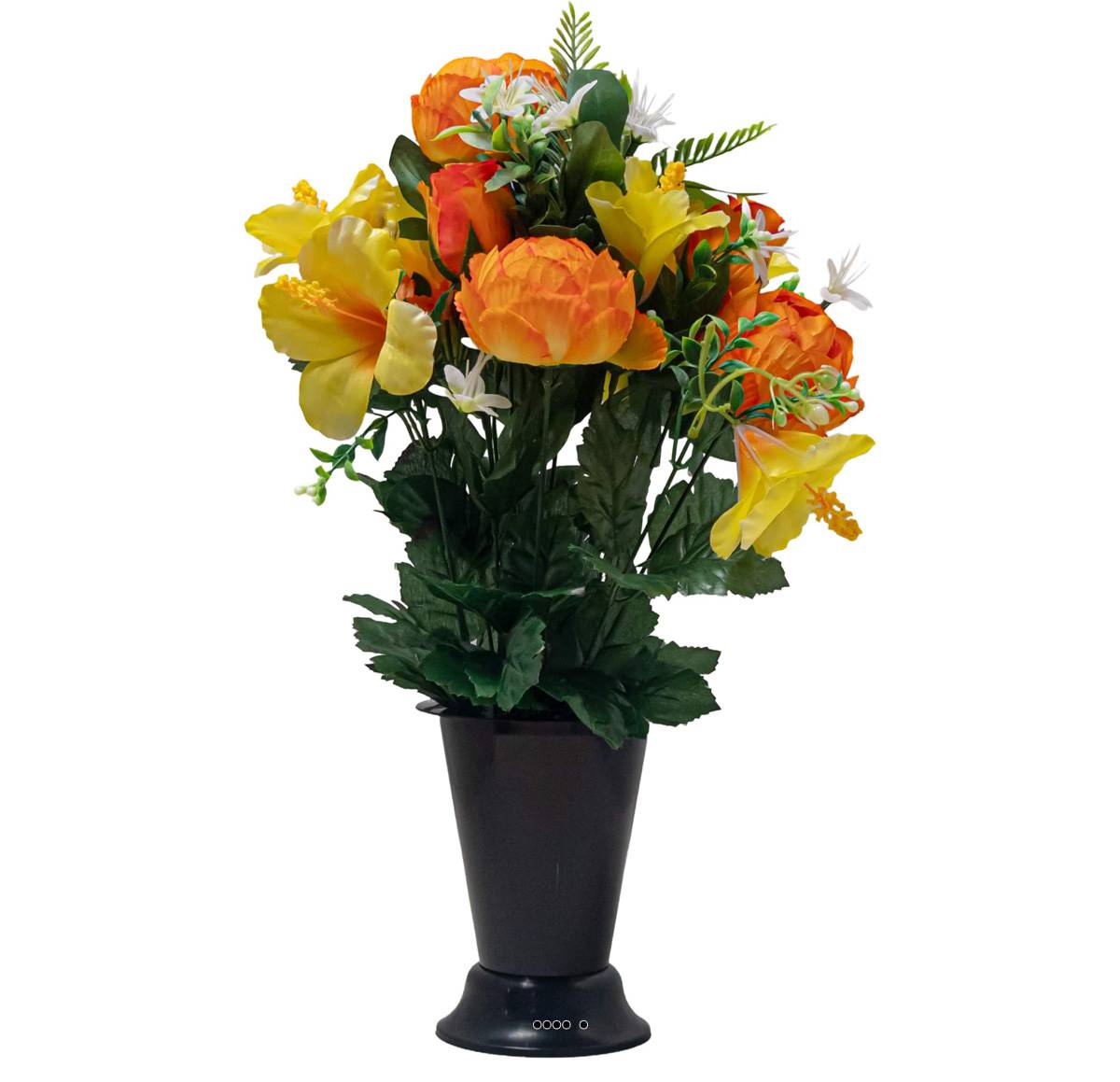 Pot Cône d'Hbiscus fleurs artificielles pour le cimetière H 45 cm D 25 cm Orange
