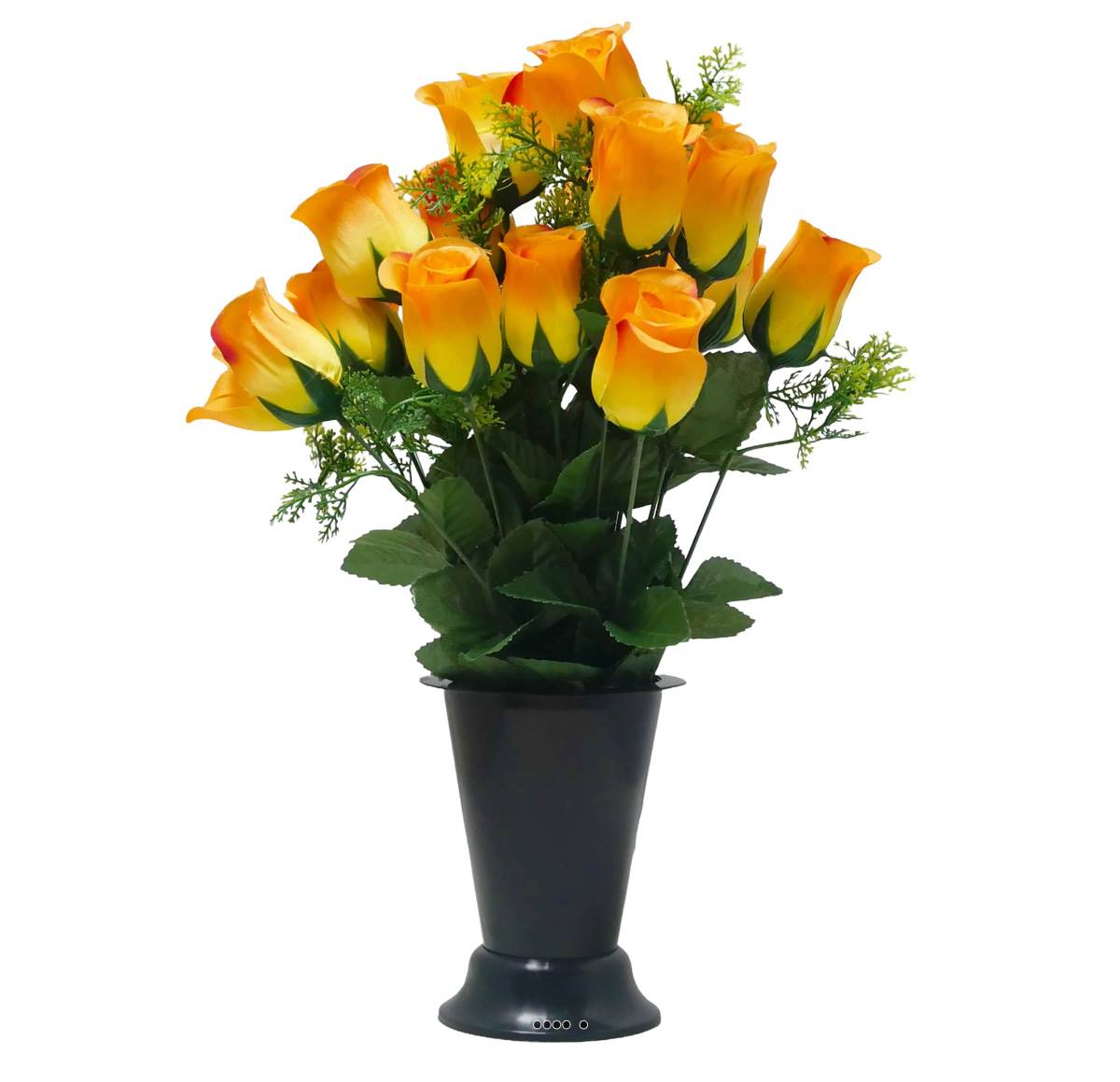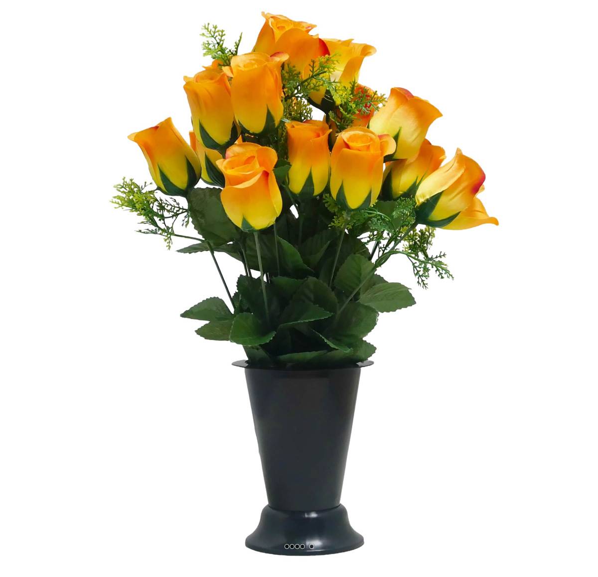Pot Cône de Boutons de Roses fleurs artificielles pour le cimetière H 38 cm D 26 cm Orange