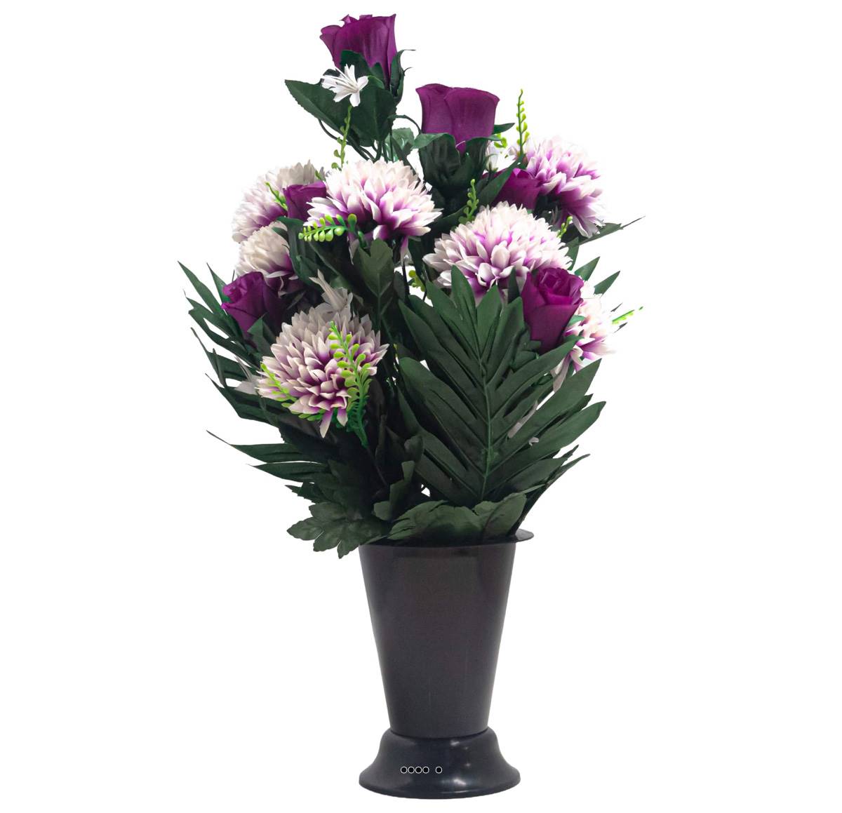 Pot Cône de Chrysanthemes fleurs artificielles pour le cimetière H 45 cm D 30 cm Pourpre