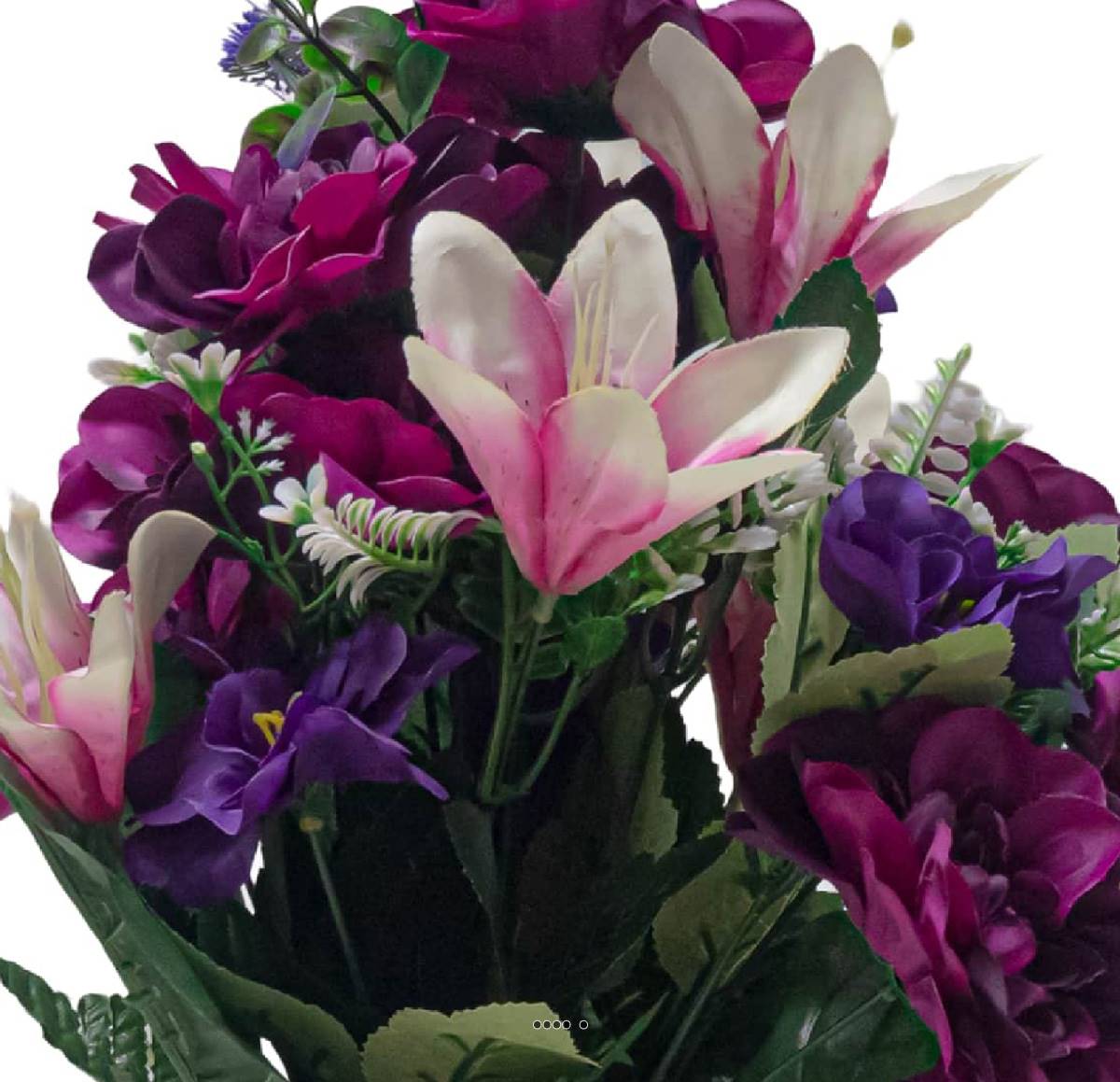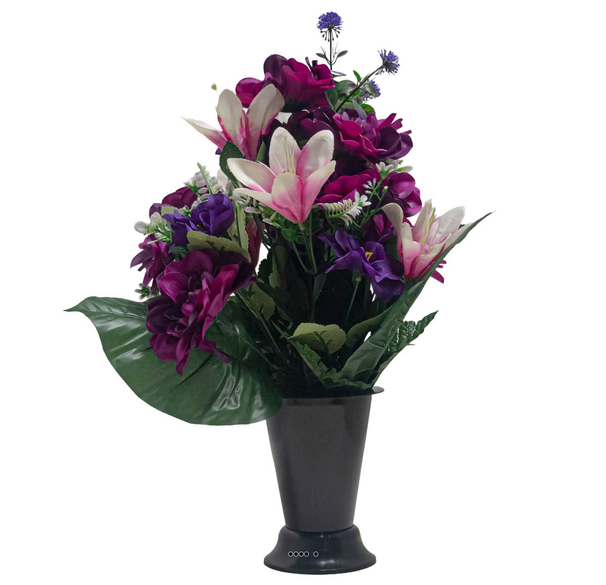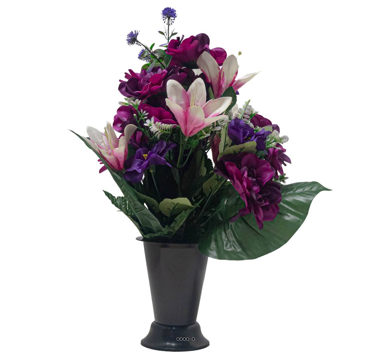 Pot Cône de Lys fleurs artificielles pour le cimetière H 45 cm D 30 cm Pourpre
