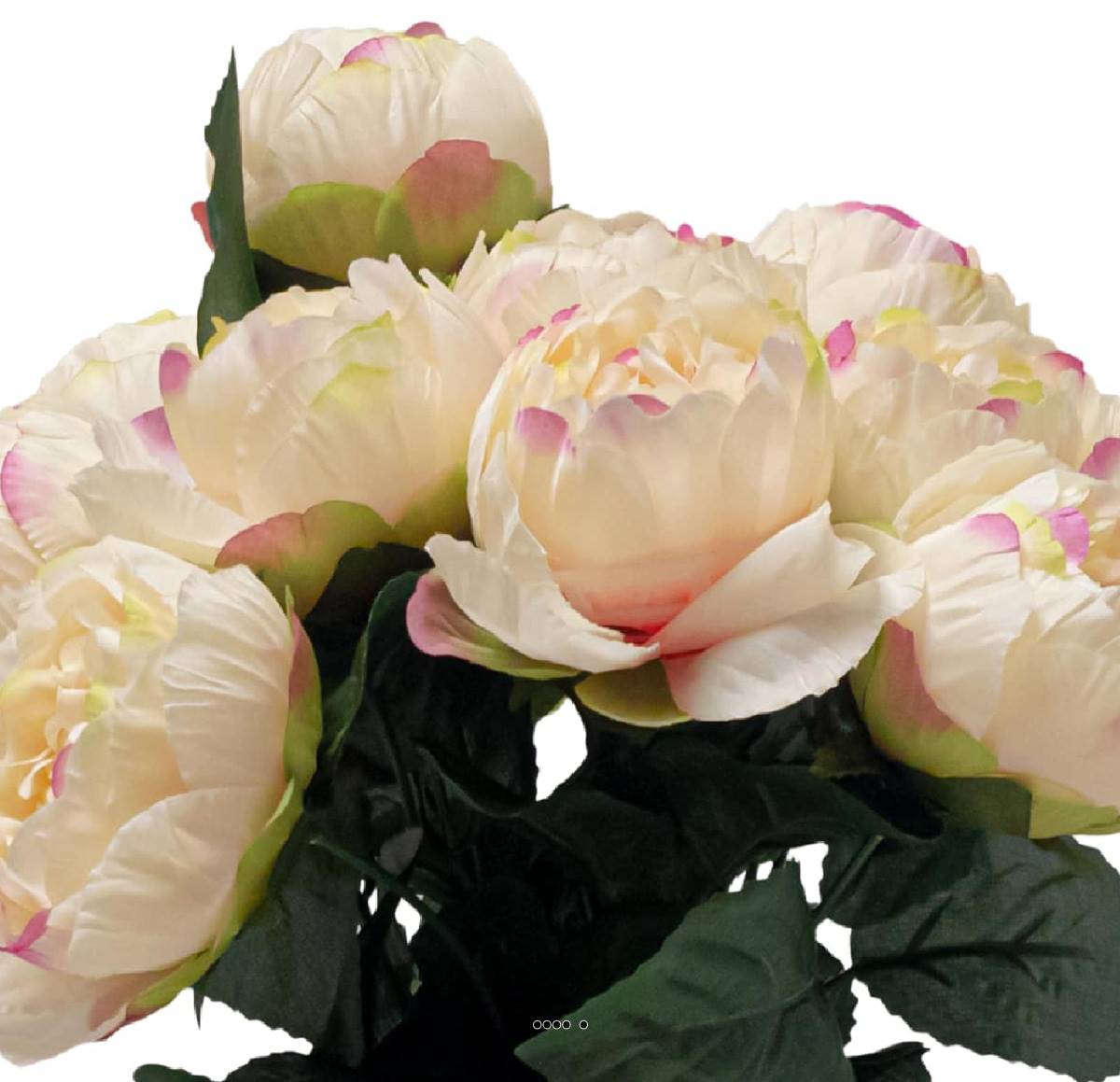 Pot Cône de Pivoines fleurs artificielles pour le cimetière H 37 cm D 30 cm Crème