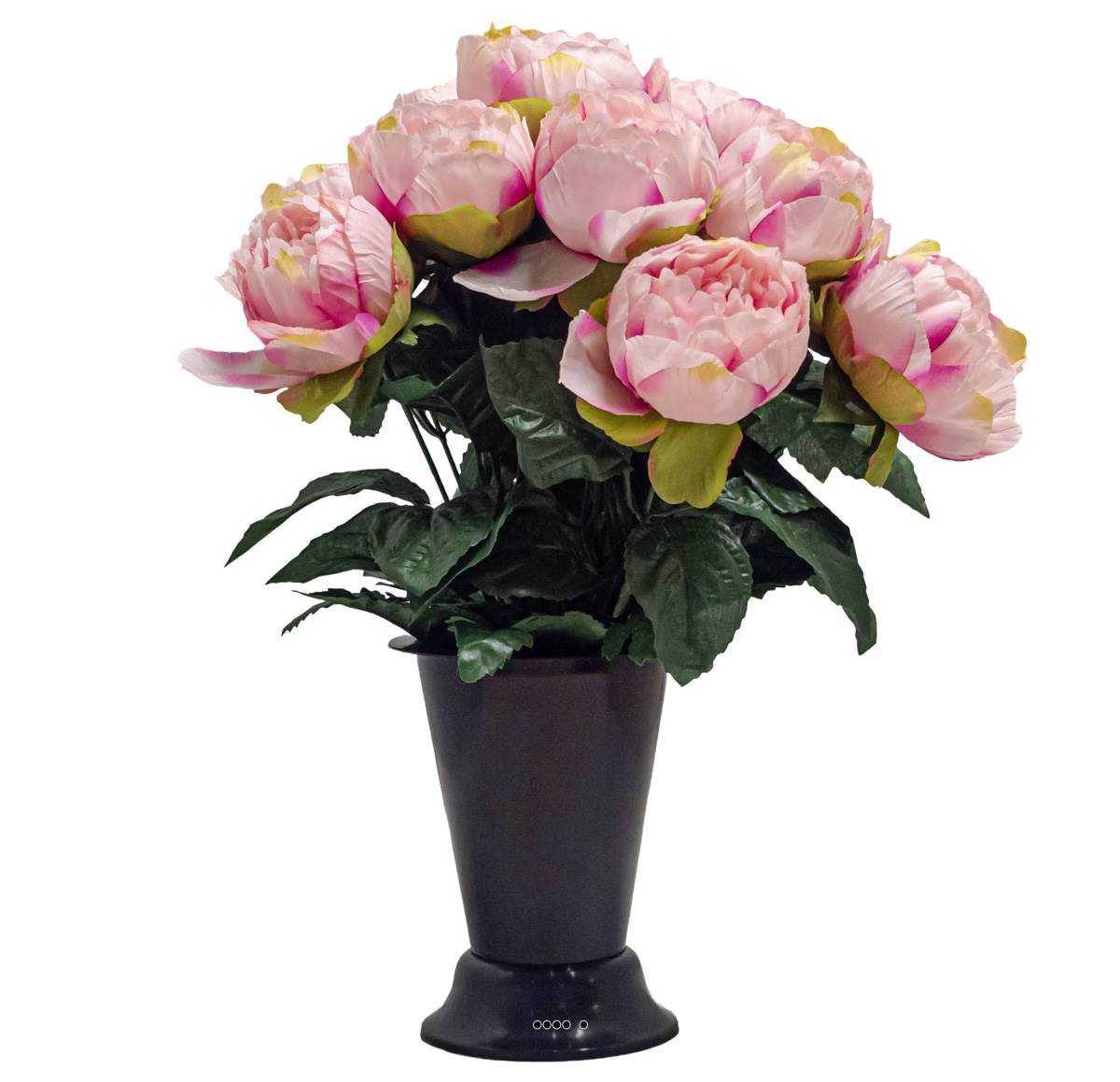 Pot Cône de Pivoines fleurs artificielles pour le cimetière H 37 cm D 30 cm Rose