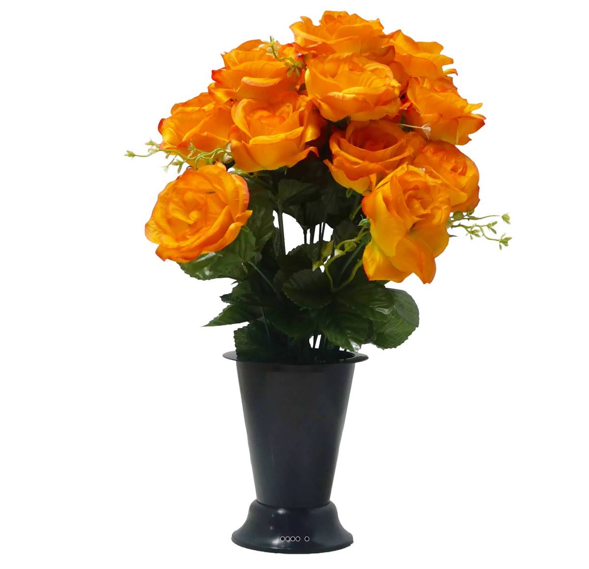 Pot Cône de Roses fleurs artificielles pour le cimetière H 43 cm D 27cm Orange