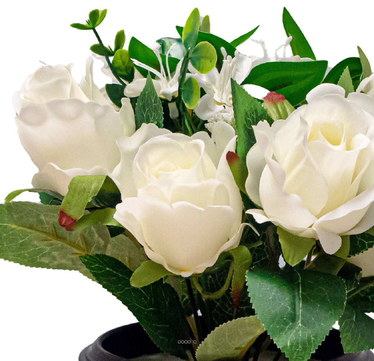 Pot de Boutons de Roses fleurs artificielles pour le cimetière H 27 cm D 24 cm Crème