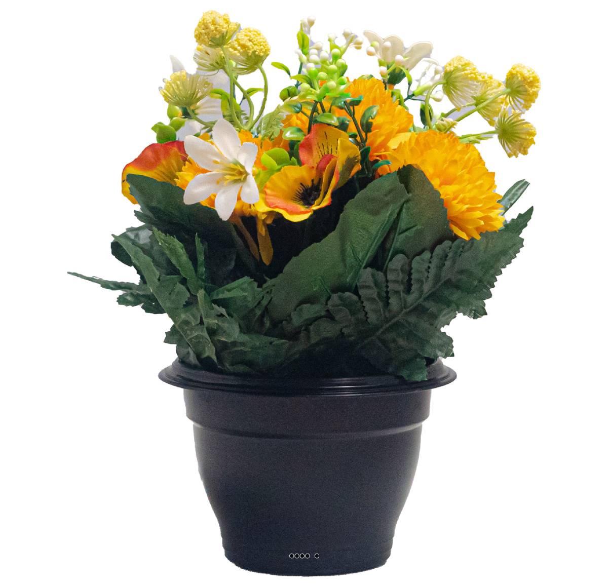 Pot de Chrysantheme, pensée et mini fleurs artificiels pour la Toussaint Jaune