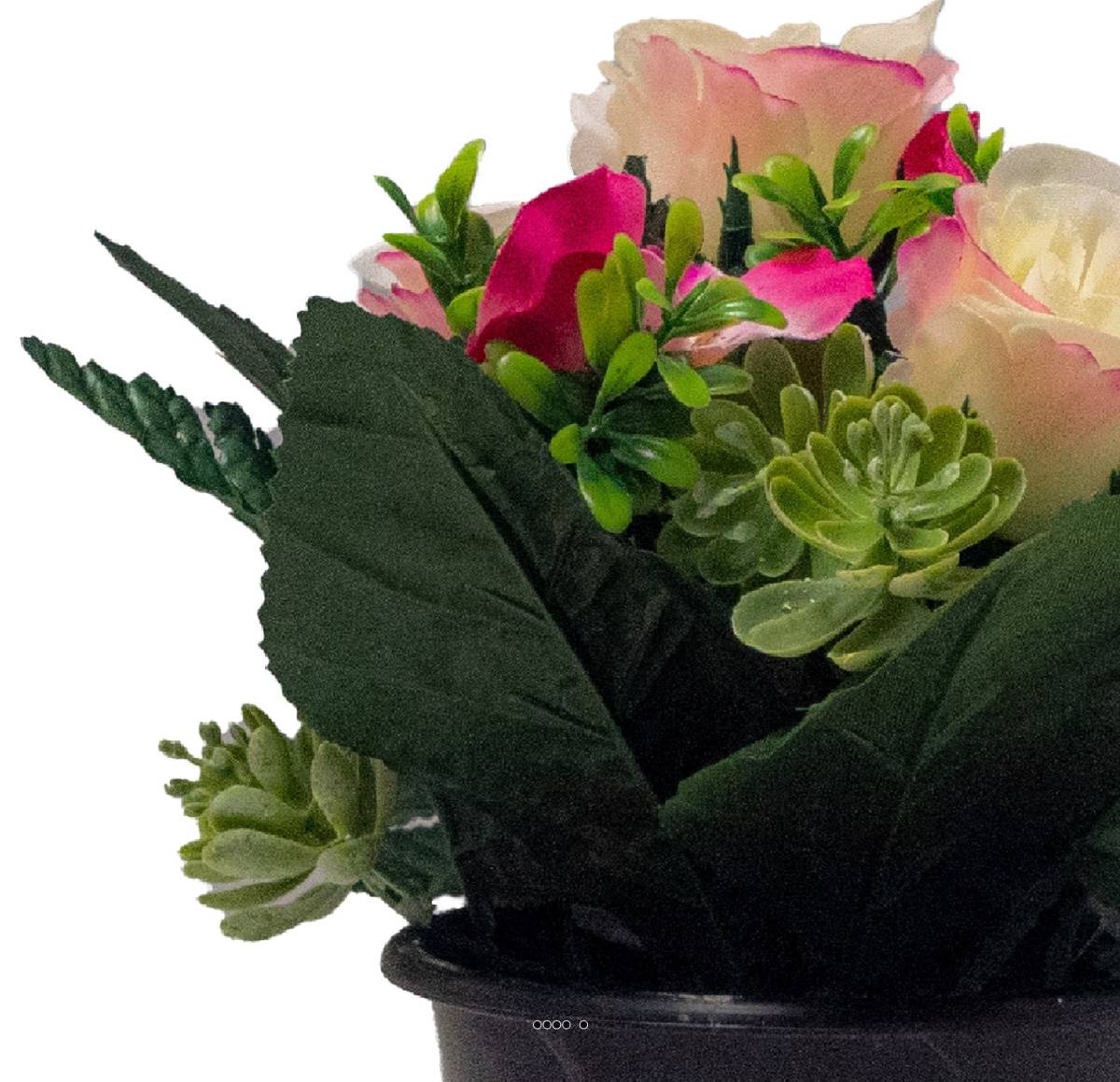 Pot de fleurs artificielles pour le cimetière H 22 cm D 18 cm Rose-crème