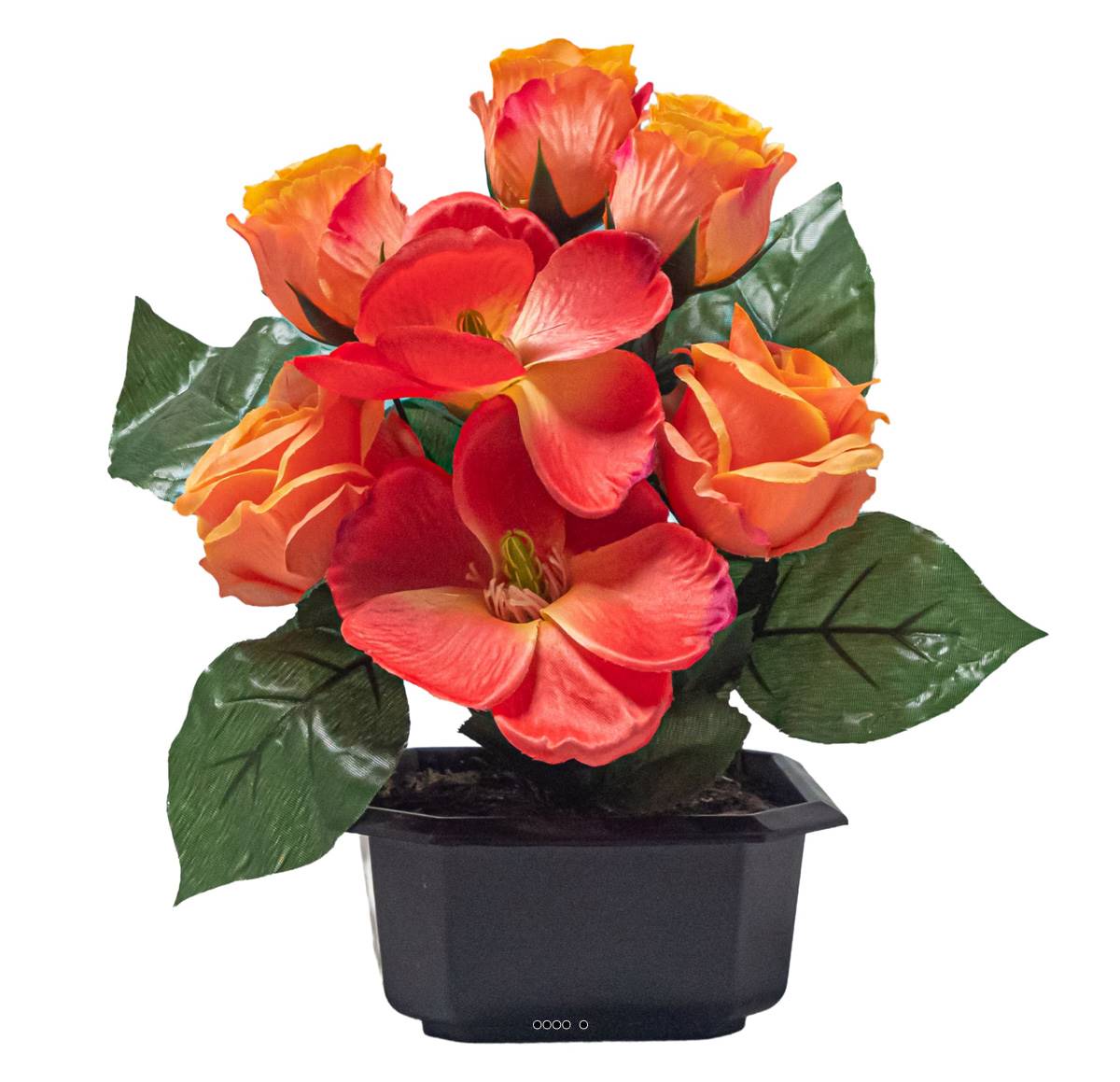 Vasque Carrée de Magnolias fleurs artificielles pour le cimetière H 25 cm Lg 25 cm Orange