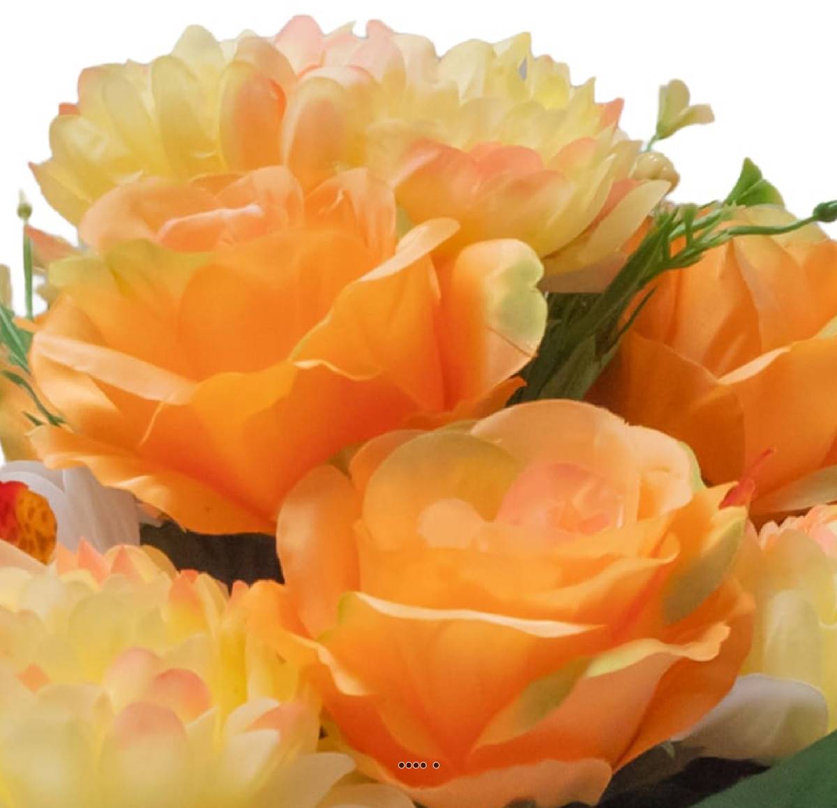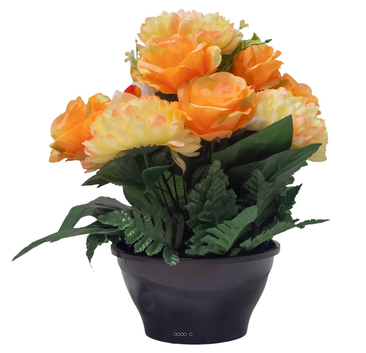 Vasque d'orchidées fleurs artificielles pour le cimetière H 31 cm D 28 cm Jaune-orange