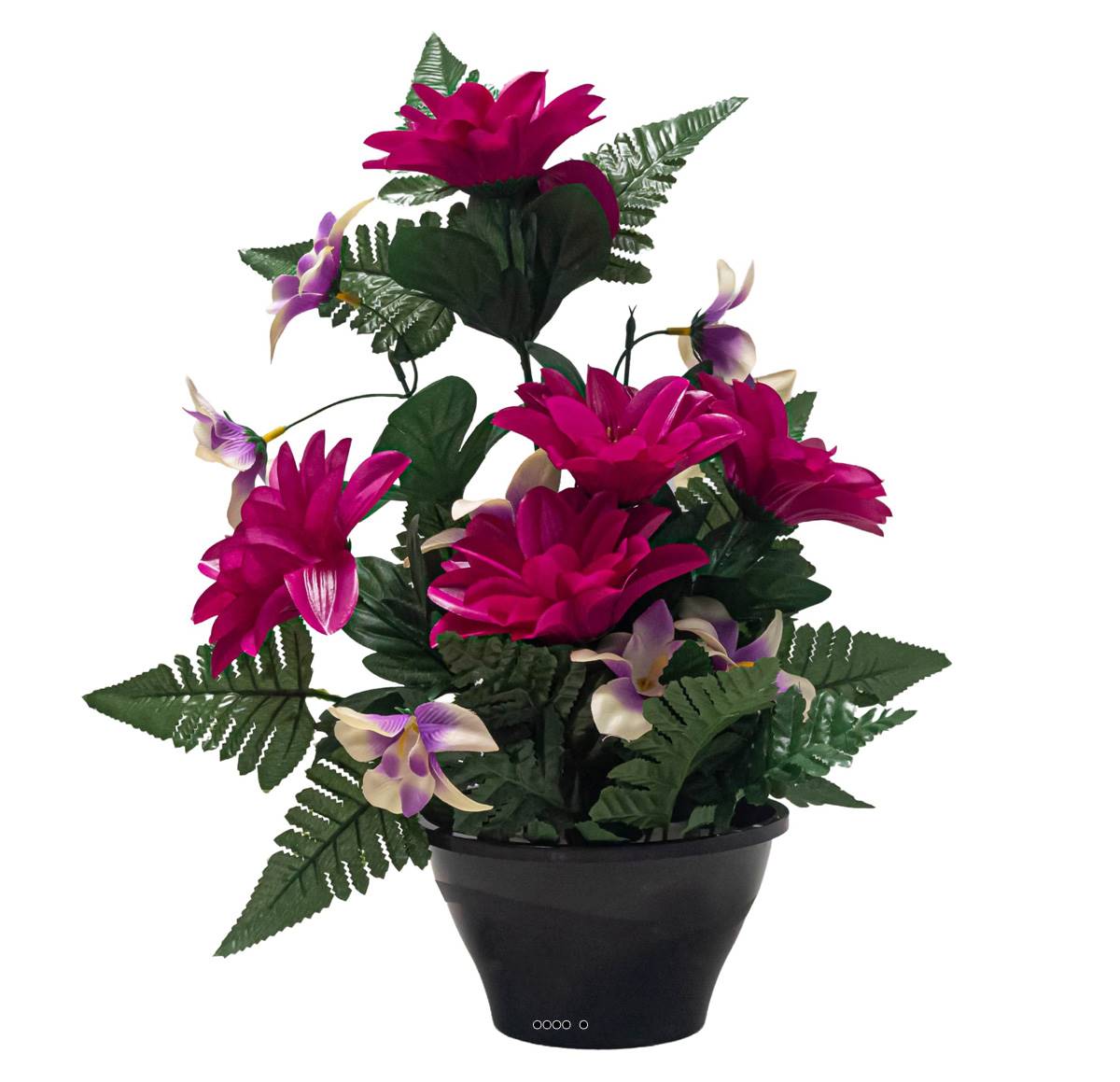 Vasque de Dahliasfleurs artificielles pour le cimetière H 36 cm D 29 cm Pourpre