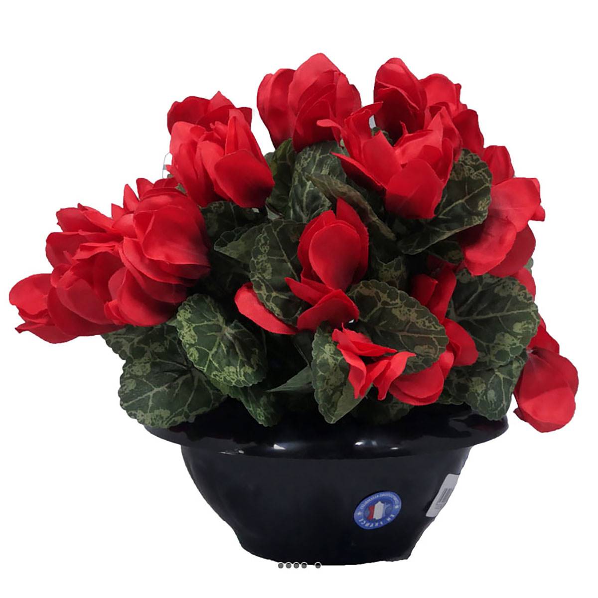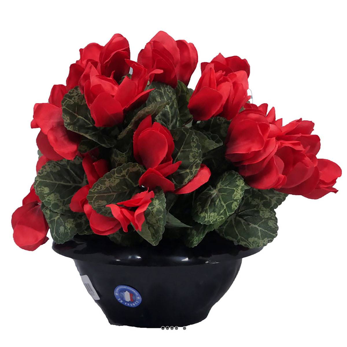 Vasque de fleurs artificielles cimetière cyclamens Rouge