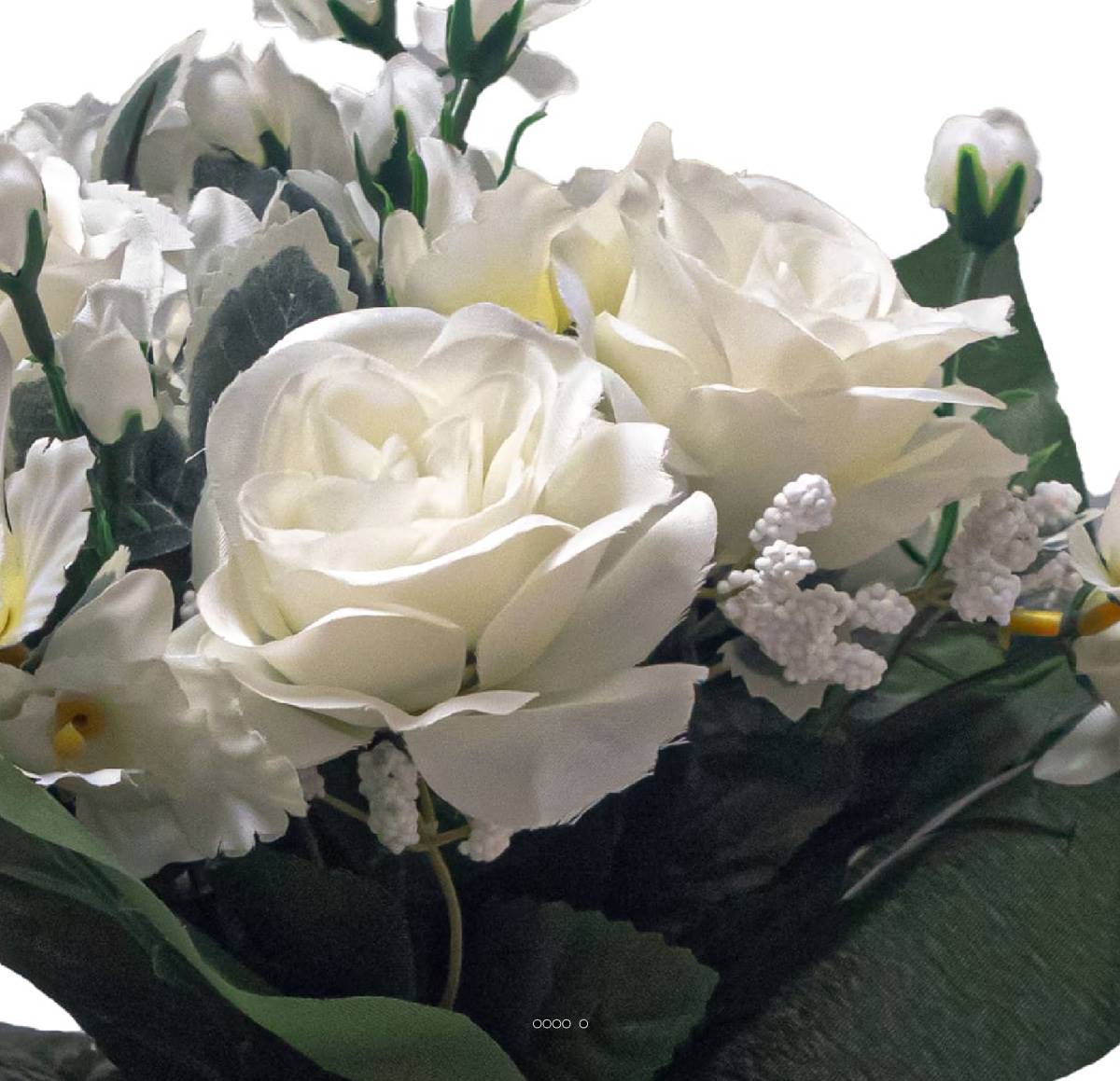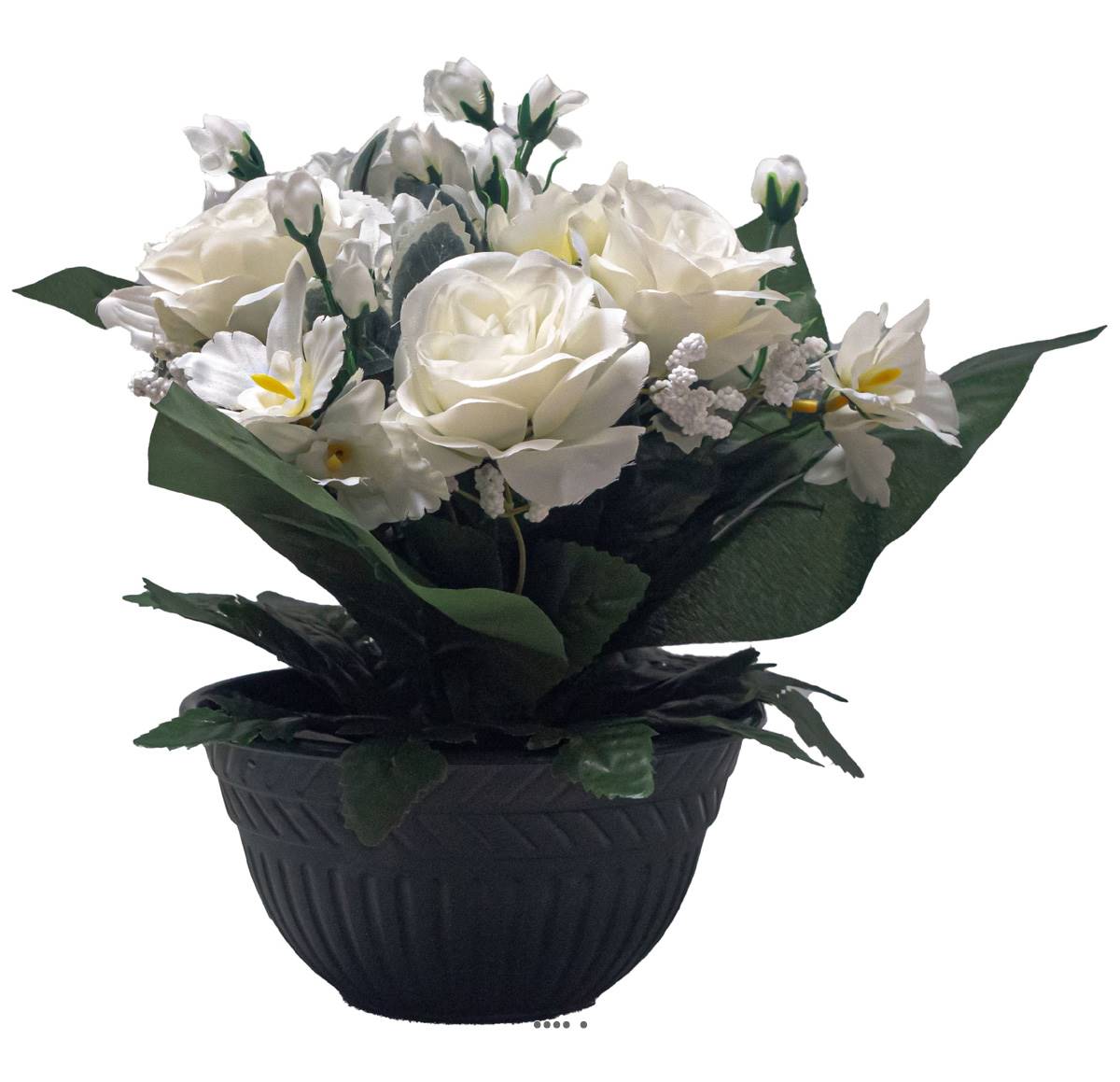 Vasque de fleurs artificielles Roses pour le cimetière H 28 cm D 30 cm Blanc neige